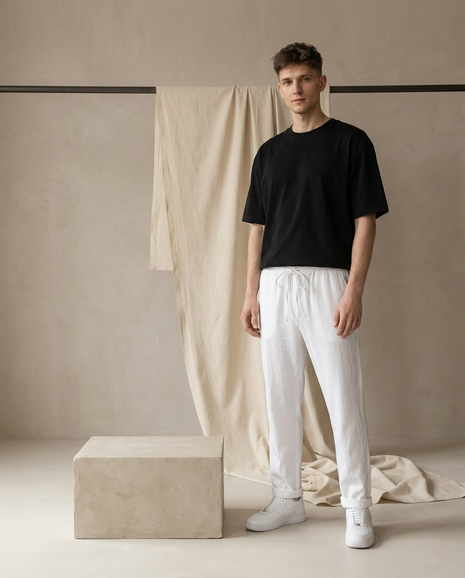 Luźne lniane spodnie męskie | Szerokie nogawki | Oddychający materiał | Na lato