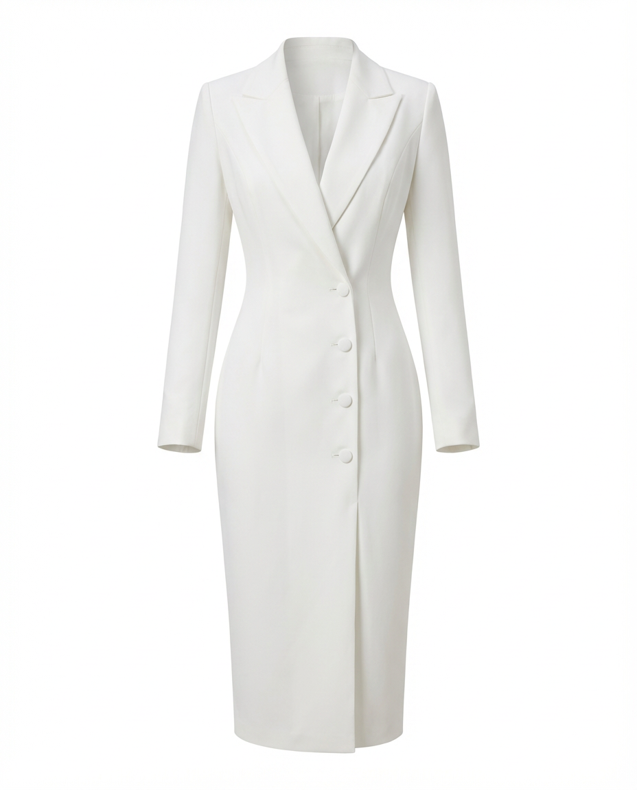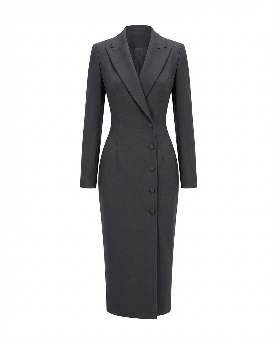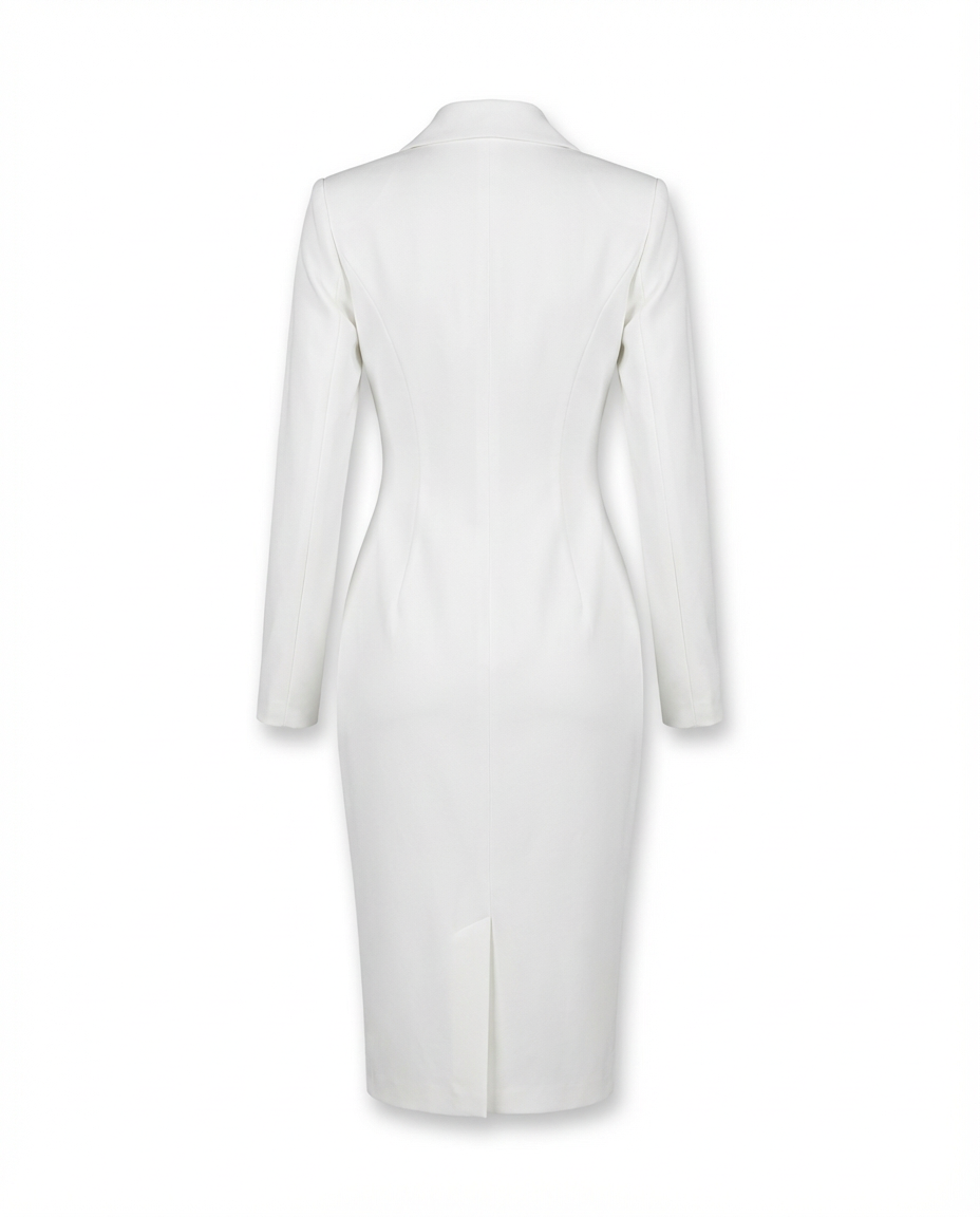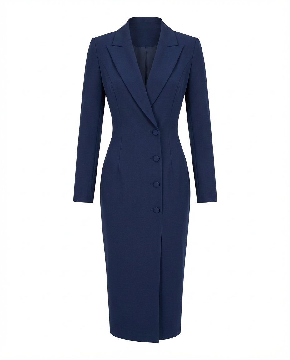 Sukienka Damska Midi Elegancka | Dopasowany Krój | Klapy i Guziki | Na Co Dzień i Do Pracy
