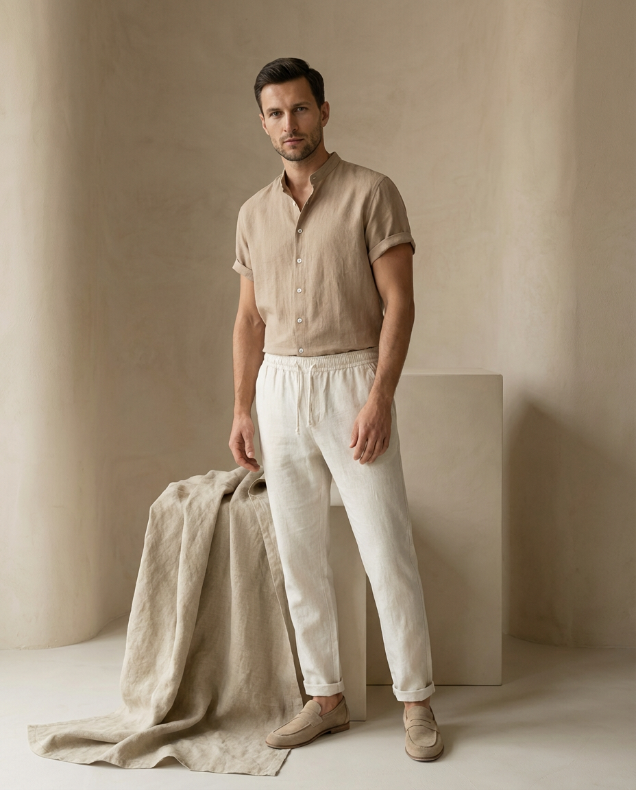 Zestaw Męski Koszula i Spodnie | Luźny Krój | Lekki Len | Na Lato